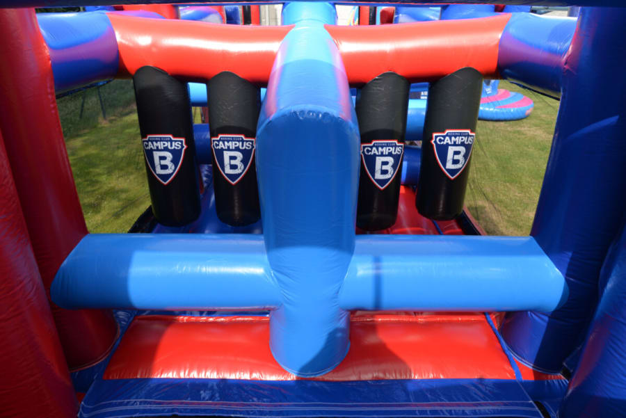 Zonder enige twijfel de meest uitdagende hindernispiste. Op dit 14 meter lange parcours, opgedeeld in 2 banen, kan je tegen al jouw vrienden en vriendinnen strijden. Overwin de bokszakken, trotseer de obstakels en klim langs het touw op de berg naar de overwinning. Enkel op die manier kun je Bo bevrijden! Uitdaging voor alle leeftijden.