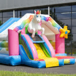 Glijden en springen in een leuke unicorn wereld: met de opvallende springkastelen Slide Combo kan het allemaal. Deze springkastelen hebben een grote aantrekkingskracht op kinderen, dankzij de originele designs, leuke 3D figuren en grappige animaties. Dit springkasteel met glijbaan in unicorn thema heeft alles om er een feest van te maken!