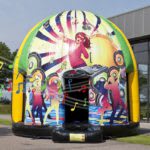 Dit Disco springkasteel is volledig overdekt en voorzien van 3 LED Disco spots en een geluidsinstallatie! Zo kan je een party houden binnenin het springkasteel! De geluidsinstallatie is voorzien voor een USB of MP3 speler op aan te sluiten!! Dit kasteel is de nieuwste trend op tal van feestjes.